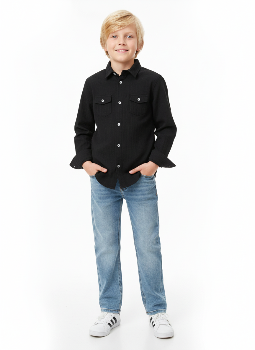 Boys Classic Black Shirt | قميص أولاديBoys Classic Black Shirt | قميص أولادي