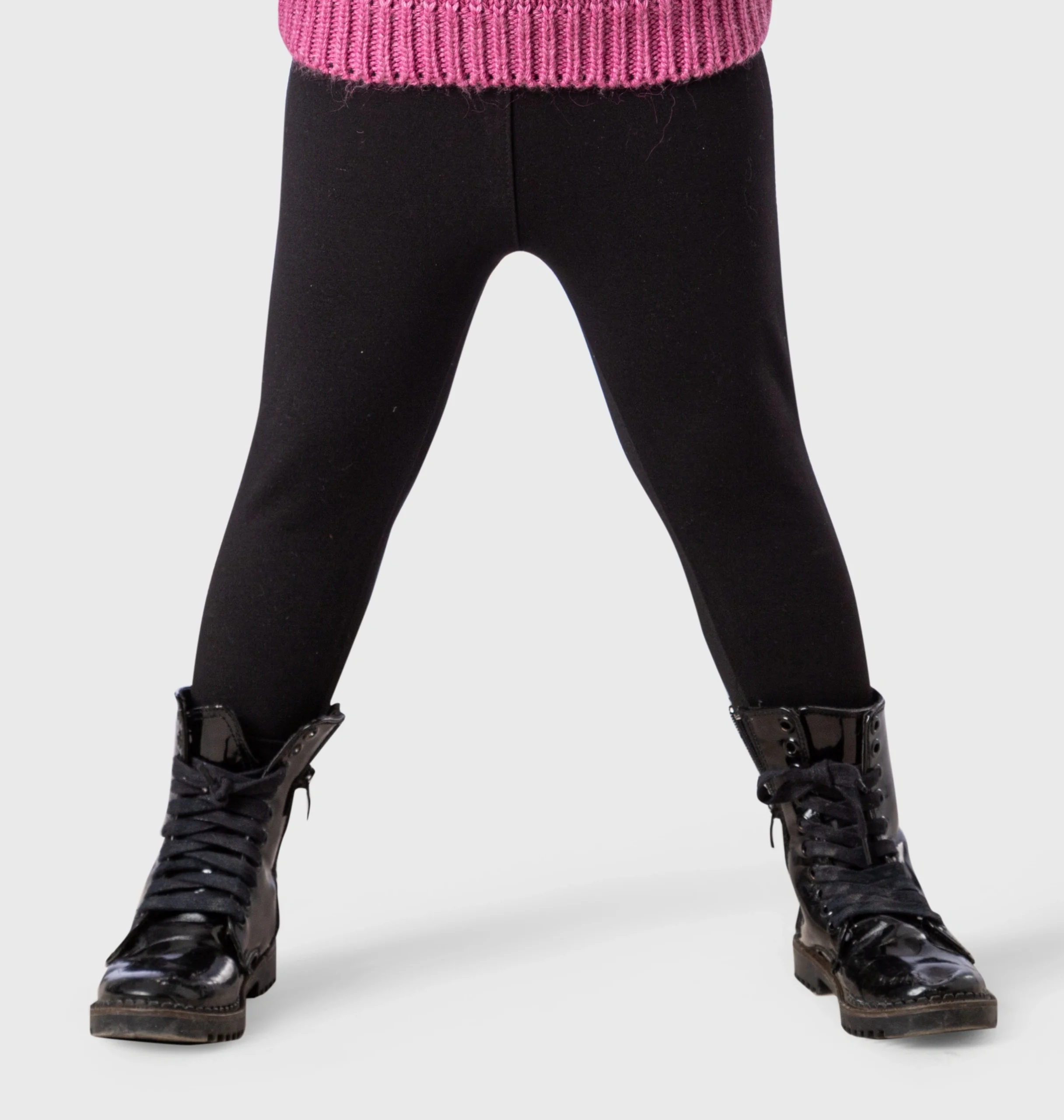 الليجن بلون أسود سادة، مما يجعله سهل التنسيق مع جميع الألوان والنقوش. الخامة مصنوعة من نسيج قطني سميك ومطاطي. هذه الخامة تضمن الدفء والمرونة اللازمة لحركة الطفلة. يتميز بخصر مطاطي مريح لا يسبب ضغطًا. الليجن بقصة ضيقة كاملة الطول، مما يحافظ على حرارة الساقين.