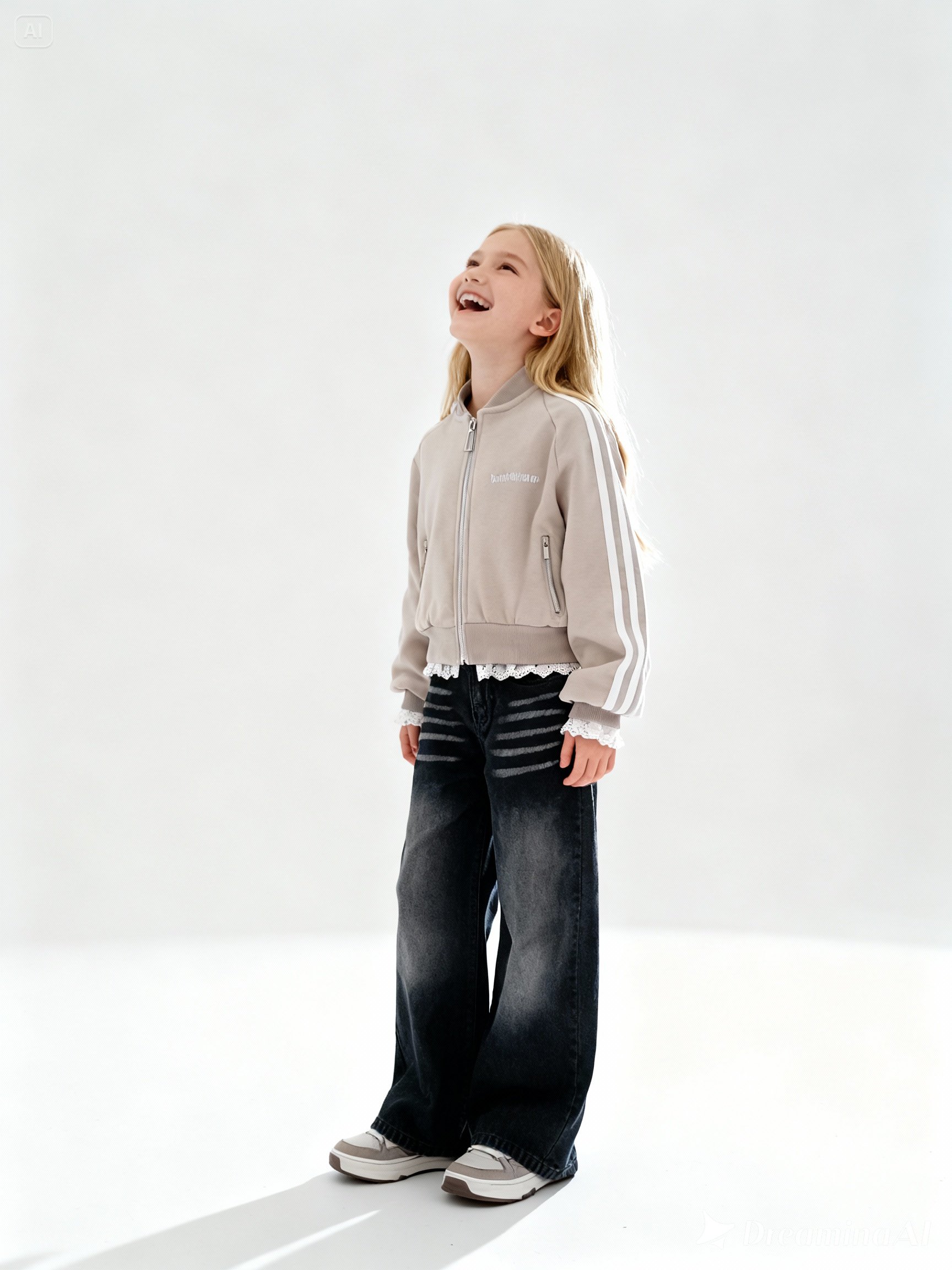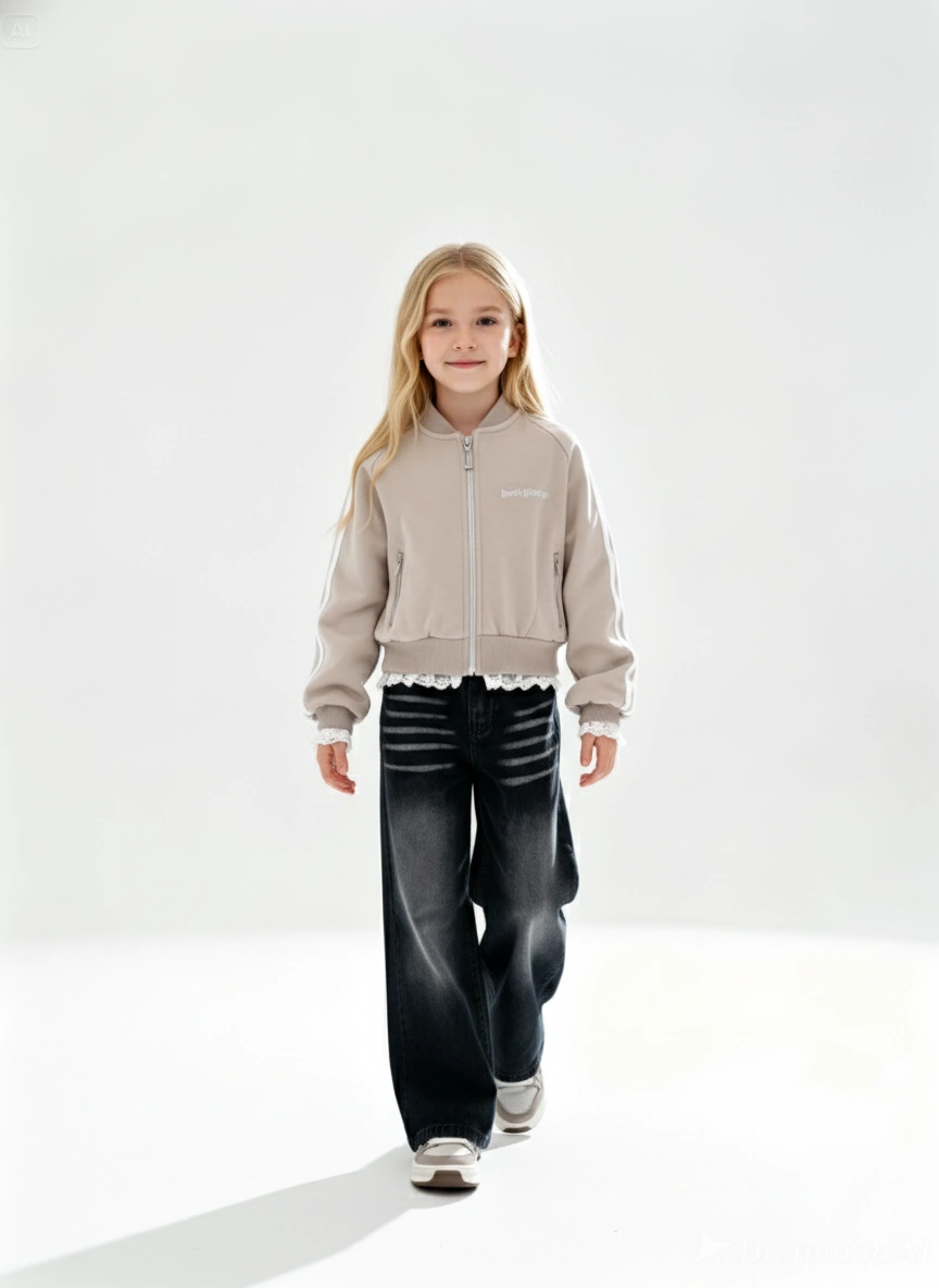 تألقي بأسلوب عصري وأنيق هذا الشتاء مع جاكيت البومبر (Bomber Jacket) البناتي الفريد. يتميز هذا الجاكيت بلون البيج الفاتح / الرملي الهادئ والمحايد، وهو لون أساسي يناسب جميع التنسيقات. الجاكيت مثالي لمقاسات البنات الكبيرة واليافعات (من 8 لـ 16 سنة).