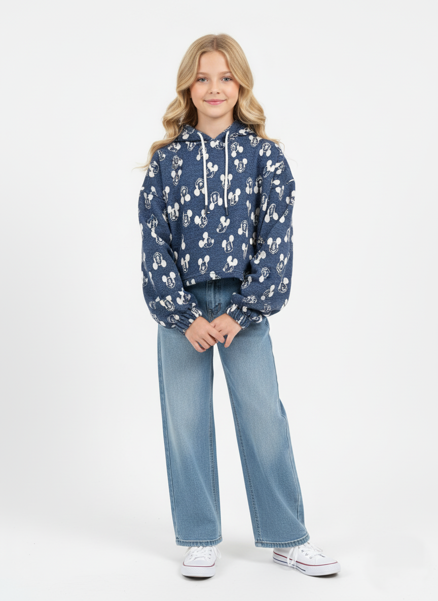 سويت شيرت بنات ميلتون كحلي بطباعة ميكي ماوس – ملابس أطفال بنات شتوية 2026Mickey Printed Hoodie for Girls | هودي بناتي