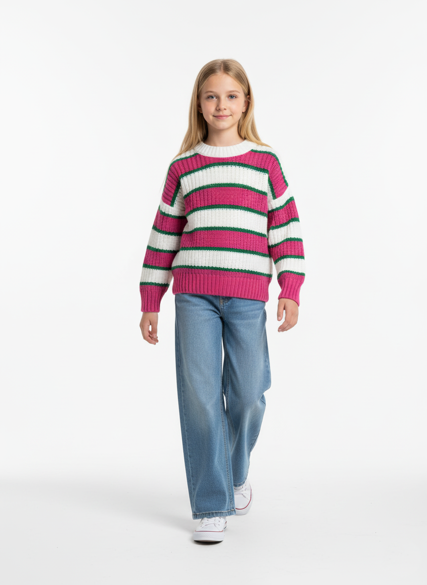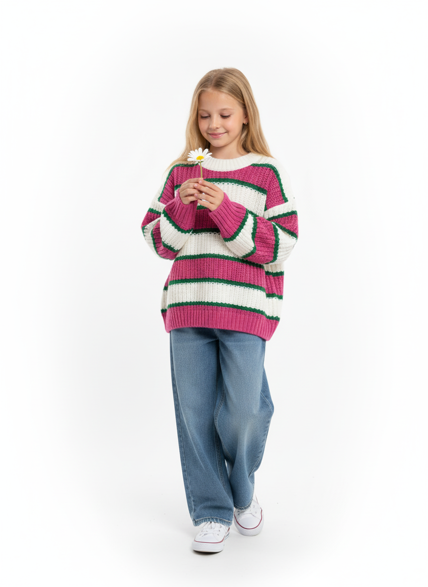 Striped Knitted Sweater for Girls | بلوفر بناتي