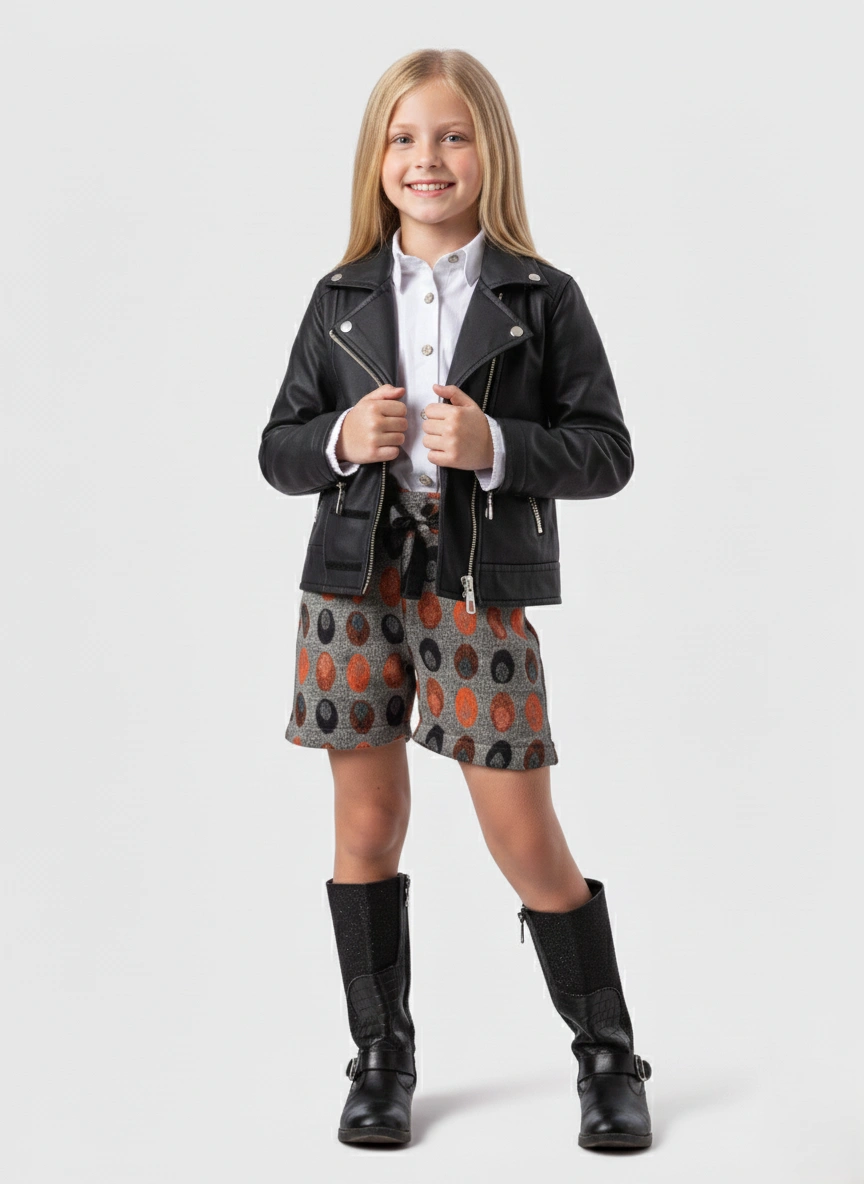 ملابس أطفال شتوية فاخرة من A&A تجمع بين الجرأة والأناقة في طقم واحد مبهر. شورت شتوي بخامة صوفية ثقيلة ومنقوشة بدوائر عصرية، يمنح طفلتك مظهرًا قويًا وأنيقًا. نوفر هذا الموديل المخصص لفئة بناتى كبير ليناسب الخروجات الشتوية والمناسبات التي تتطلب إطلالة غير تقليدية. القماش ناعم جدًا على البشرة ويوفر الدفء اللازم مع حرية كاملة في الحركة والنشاط اليومي.