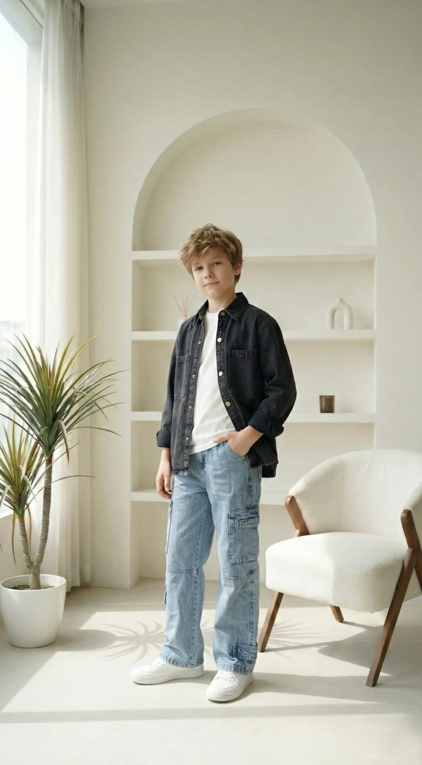 ملابس أطفال خريفية تمنح طفلك إطلالة كلاسيكية لا تنتهي موضتها أبدًا. يتميز هذا الجاكيت الجينز بلون أسود مغسول يضيف لمسة من الفخامة. حرصنا في براند A&A على اختيار أجود خامات الدنيم. الخامة متينة وتتحمل الحركة الكثيرة ومناسبة لتقلبات الجو. التصميم يأتي بجيوب أمامية واسعة وأزرار ذهبية أنيقة.
