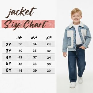 نصائح العناية: اغسلي الجاكيت بالغسالة على دورة لطيفة بماء بارد للحفاظ على جودة قماش الدينيم ونعومة بطانة الشيربا. تجنّبي استخدام المبيضات، واكوي الجاكيت على درجة حرارة منخفضة من الداخل. اختار لطفلك الأفضل الآن قبل نفاد الكمية!