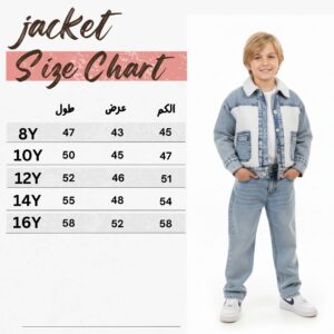 امنح ولدك ستايلاً كلاسيكياً ودفئاً استثنائياً مع هذا الجاكيت الجينز الشتوي! نقدم لك جاكيت أولادي جينز يناسب المقاسات الكبيرة (8-16 سنة). يتميز هذا الجاكيت بقصة واسعة وعصرية باللون الأزرق الفاتح.