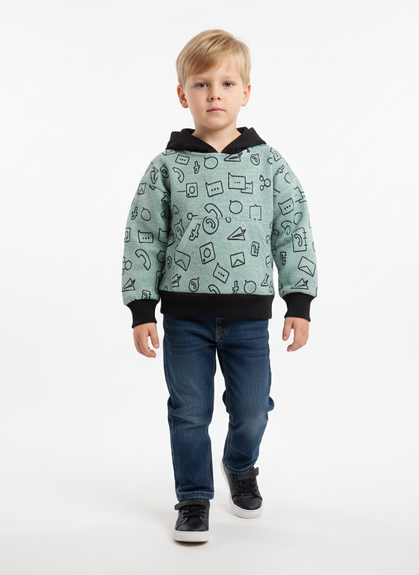 ملابس أطفال بتصميم يواكب أحدث خطوط الموضة. امنحي طفلك إطلالة عصرية ومريحة مع هذا السويت شيرت الهودي الفاخر. الخامة الدافئة والناعمة، وتفاصيل الطباعة الجذابة على لون مينت أنيق تضمن له الأناقة والراحة في كل حركة. اختاري لطفلك الأفضل في مقاسات من 2 لـ 6 سنوات.