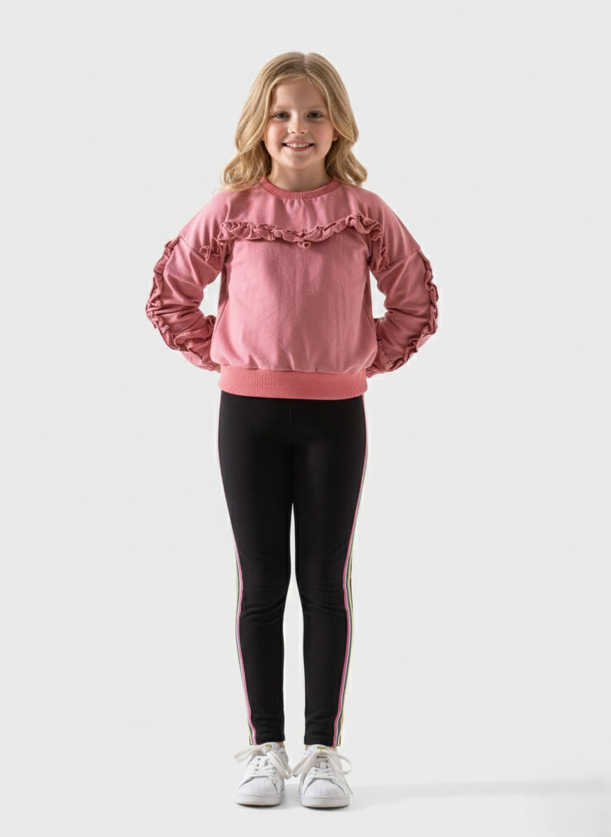 ملابس أطفال شتوية من براند A&A تجمع بين الرقة والدفء في تصميم واحد. هذا السويتر البناتي يأتي بلون وردي (Rose) ساحر، مع تفاصيل كشكشة (Ruffles) أنيقة على الصدر والأكمام تمنح طفلتك مظهرًا ملكيًا. استخدمنا أفضل خامات القطن المبطن لضمان ملمس ناعم جداً على بشرة طفلتك الحساسة وحمايتها من برد الشتاء.