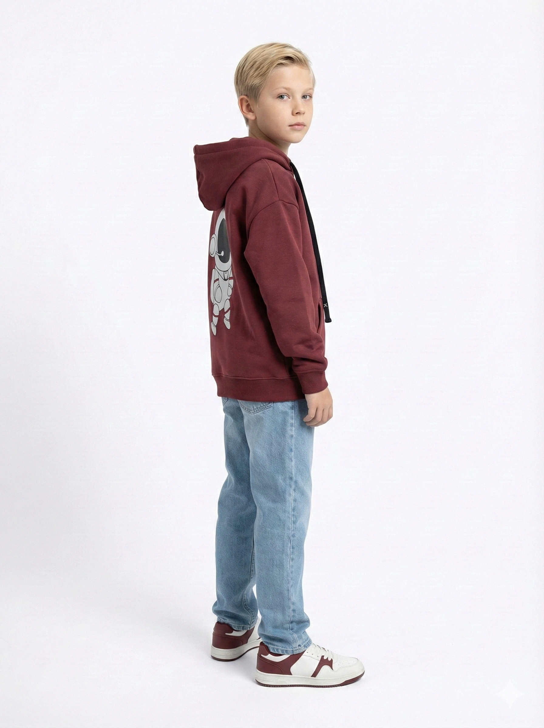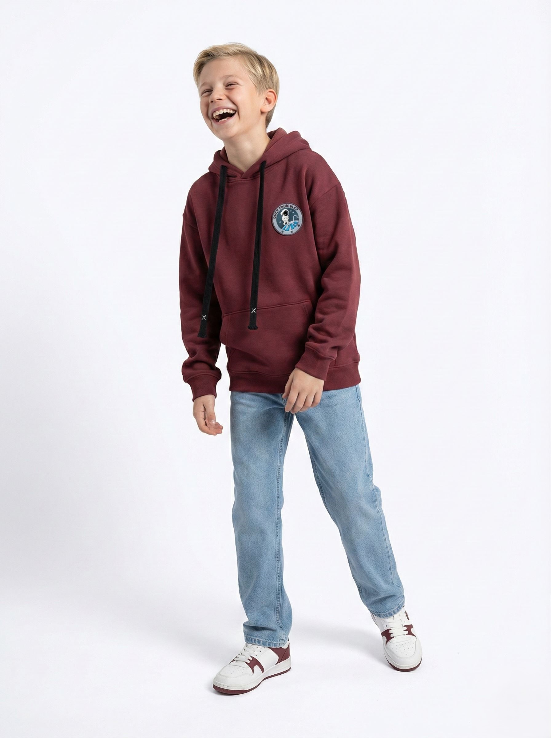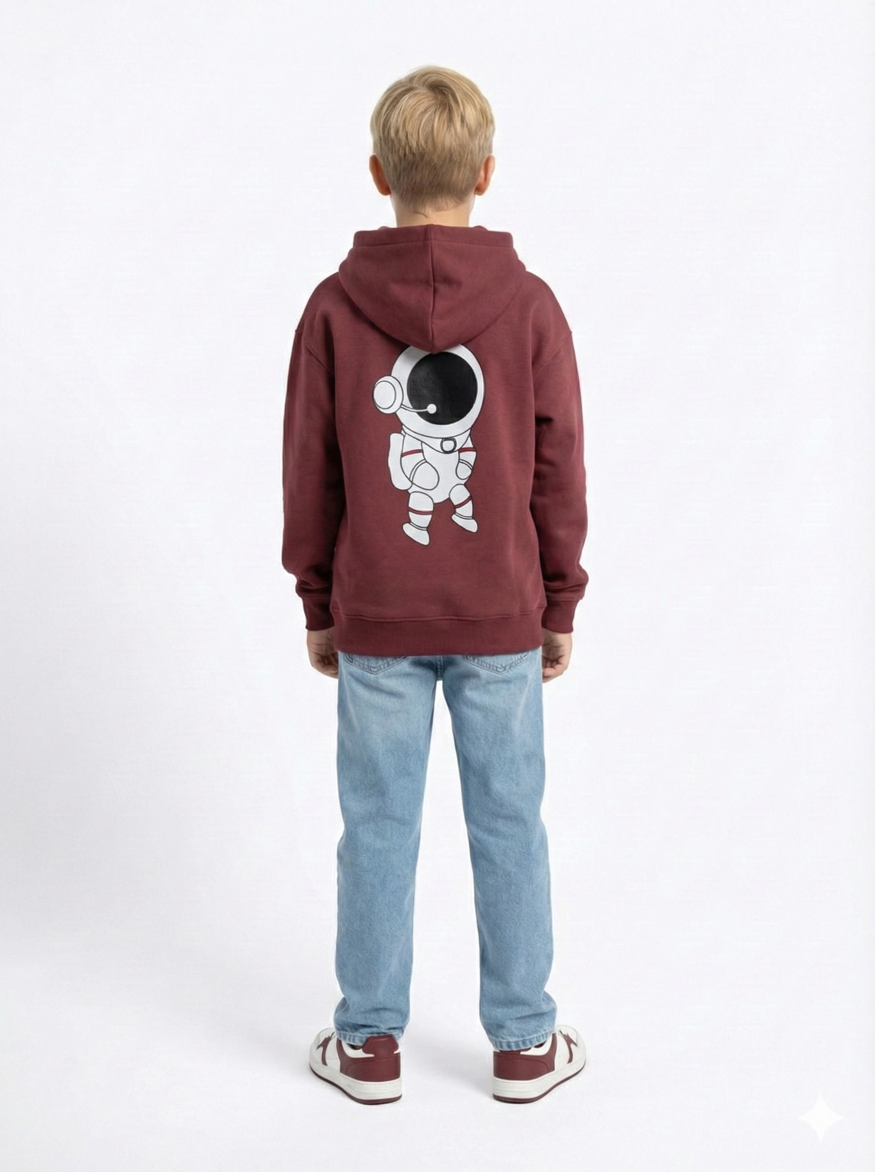 التصميم بيخطف العين بفضل طبعة رائد الفضاء الكبيرة والمميزة على الظهر، مع بادج “Out From Sleep” الشيك من قدام، وده بيدي لوك عصري وجريء يناسب الأولاد اللي بيحبوا التميز. في براند A&A، ركزنا على التفاصيل العملية زي الجيب الكبير (Kangaroo pocket) والأساور المحكمة عشان تمنع دخول البرد. الخامة بتتحمل الغسيل المتكرر وبتحافظ على رونقها. اختاري القطعة دي عشان تضمني لابنك إطلالة “كاجوال” مريحة وفخمة في خروجات النادي أو المدرسة.