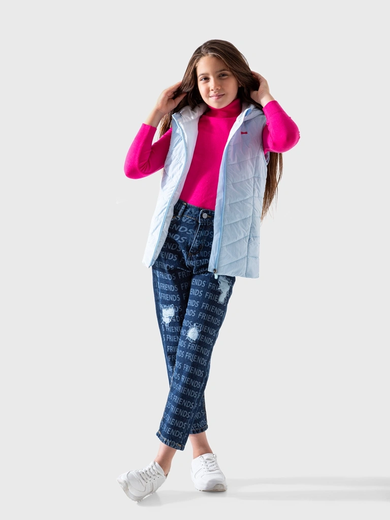 اللون الأزرق السماوي الفاتح يمنح طفلتك إطلالة ناعمة ومشرقة، ويسهل تنسيقه مع السويت شيرتات ذات الرقبة العالية (الهاي كول) أو الكنزات السميكة. يتميز الفيست بسحاب أمامي كامل لسهولة اللبس، وغطاء رأس يضمن الحماية الإضافية من الأمطار الخفيفة. الجيوب الجانبية العملية تمكن طفلتك من وضع يديها للحماية من البرد.