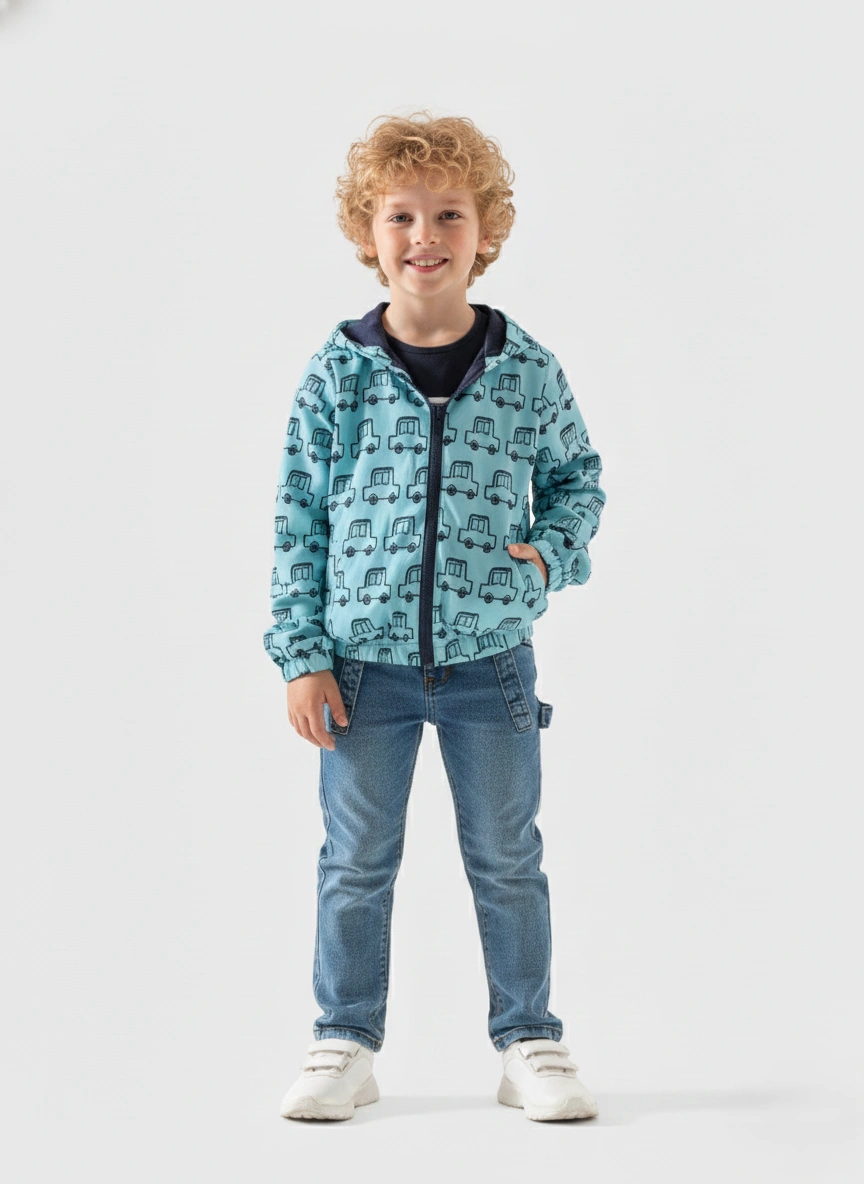 ملابس أطفال شتوية مميزة تقدمها لكِ علامة A&A بتصميم عصري يجمع بين الأناقة والعملية. يتميز هذا الجاكيت بلون سماوي جذاب مع طبعات سيارات صغيرة تضفي لمسة من المرح على إطلالة طفلك اليومية. الجاكيت مصنوع من خامة عالية الجودة تحمي طفلك من الرياح وتوفر له الدفء اللازم في الأيام الباردة. صممنا هذه القطعة خصيصًا لتناسب أولادى بيبي بمقاسات تبدأ من سن سنتين لضمان حرية الحركة والنشاط. القصة مريحة جدًا وتتضمن غطاء للرأس (هودي) وسوستة أمامية متينة لسهولة الارتداء والخلع.