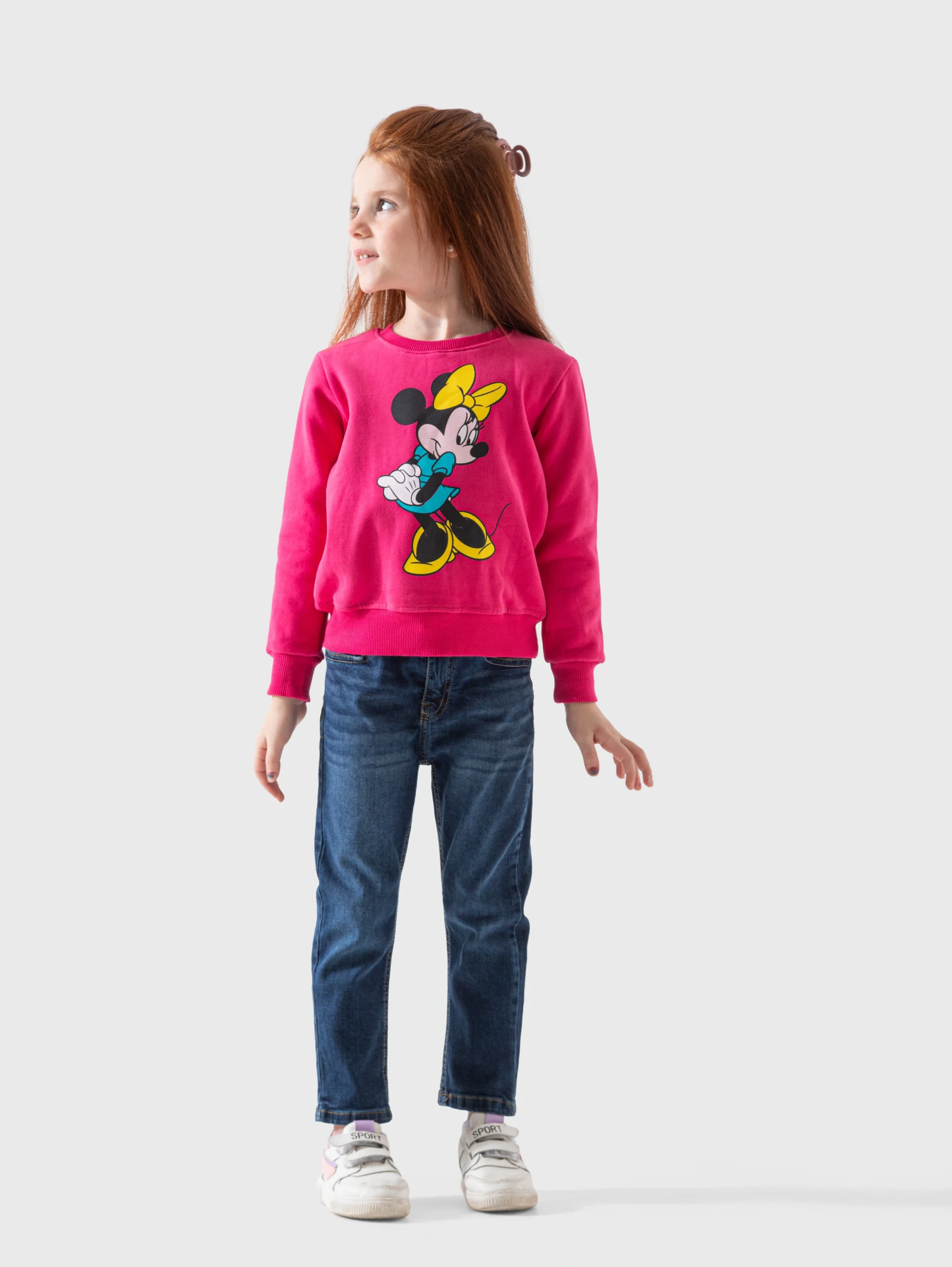 ملابس أطفال شتوية تجمع بين الأناقة الفائقة والراحة المثالية من براند A&A العالمية. يتميز هذا السويت شيرت بلونه الفوشيا الجذاب وطبعة ميني ماوس الشهيرة التي تعشقها كل البنات الصغيرات. صنعنا هذه القطعة من أجود خامات القطن المبطن لضمان الدفء والنعومة على بشرة طفلتك الحساسة. التصميم عصري بياقة مستديرة وأساور مرنة توفر حرية كاملة في الحركة والنشاط اليومي.