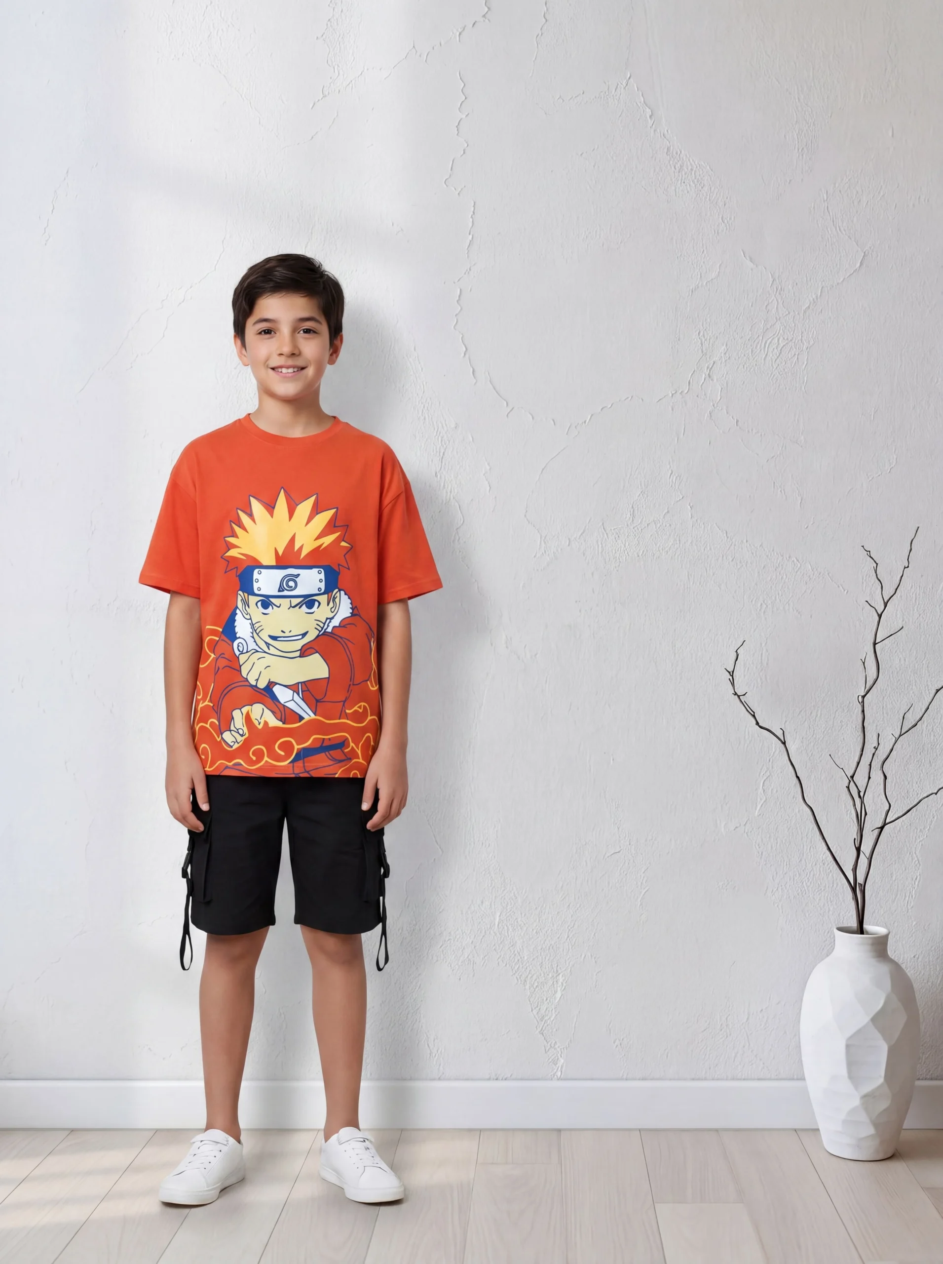 ملابس أطفال صيفية مميزة بتصميم ناروتو الشهير، تيشيرت قطني ناعم باللون البرتقالي الجذاب. يوفر الراحة والأناقة لفئة أولادى كبير بمقاسات من 8 إلى 16 سنة. اطلبي الأناقة لطفلك الآن من A&A.