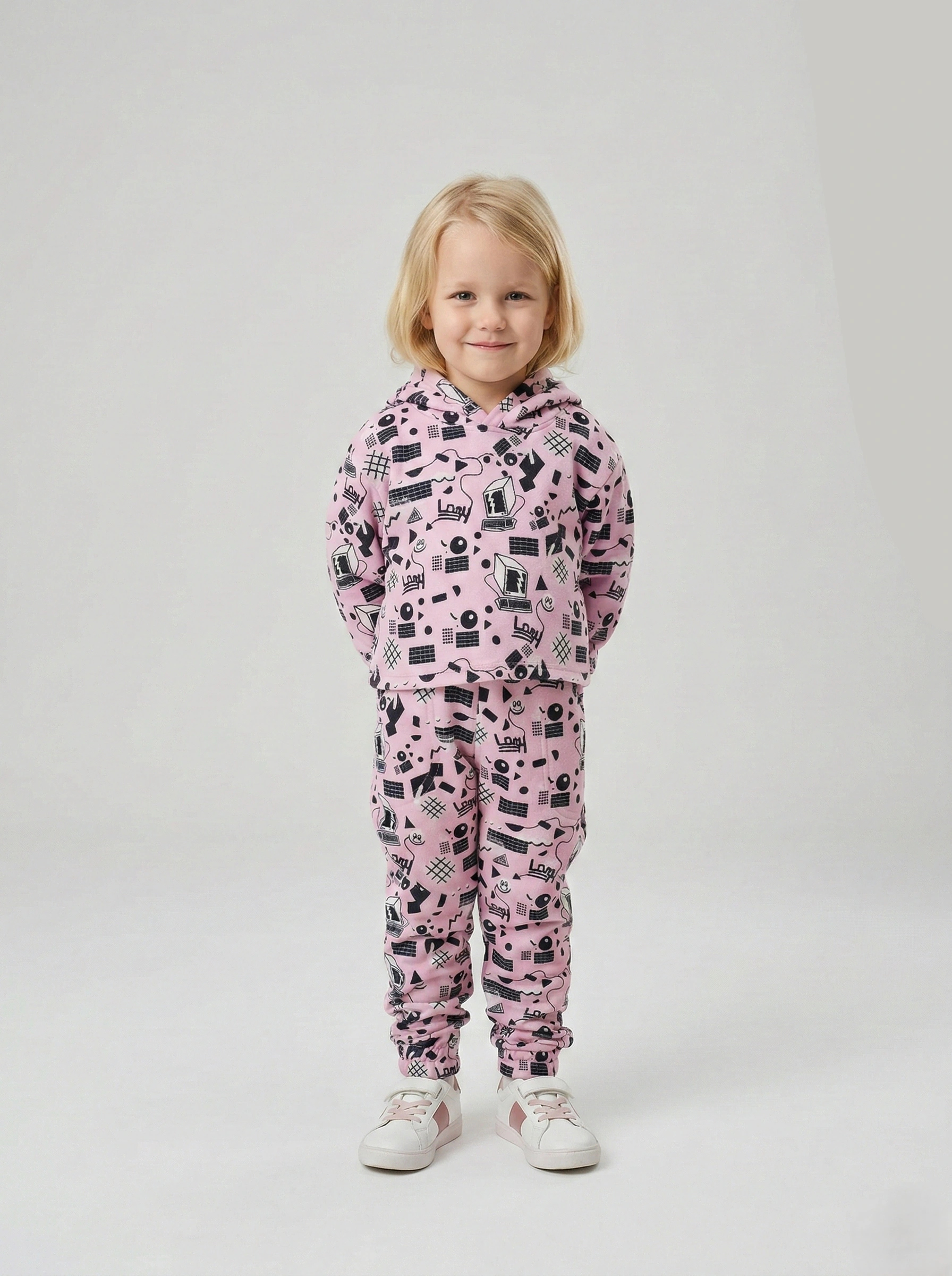 سوت بناتي شتوي وردي قطعتين – ملابس أطفال مطبوعة أنيقةPink Two-Piece Set for Girls | سوت بناتي