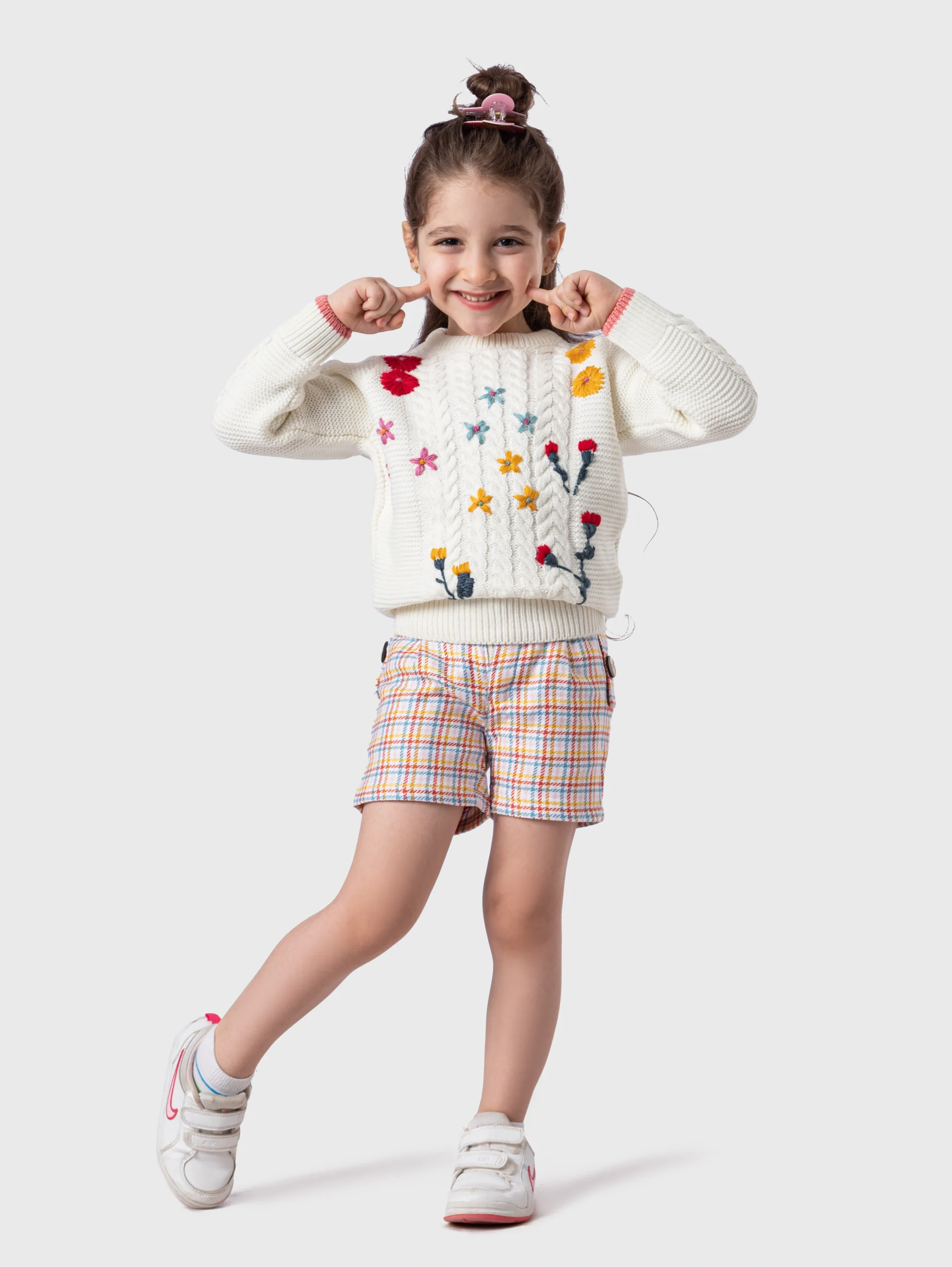 ملابس أطفال بنات؛ شورت أنيق ومريح بتصميم كاروهات (Plaid Check) متعدد الألوان. هذا الشورت من A&A هو القطعة المثالية لارتداء طفلتكِ في الأجواء الخريفية المعتدلة أو الصيفية، ويمكن تنسيقه ببراعة مع الكنزات الصوفية الخفيفة. الخامة من القطن الناعم والخفيف، مما يضمن الراحة الكاملة لبشرة طفلتكِ الحساسة أثناء اللعب والحركة.