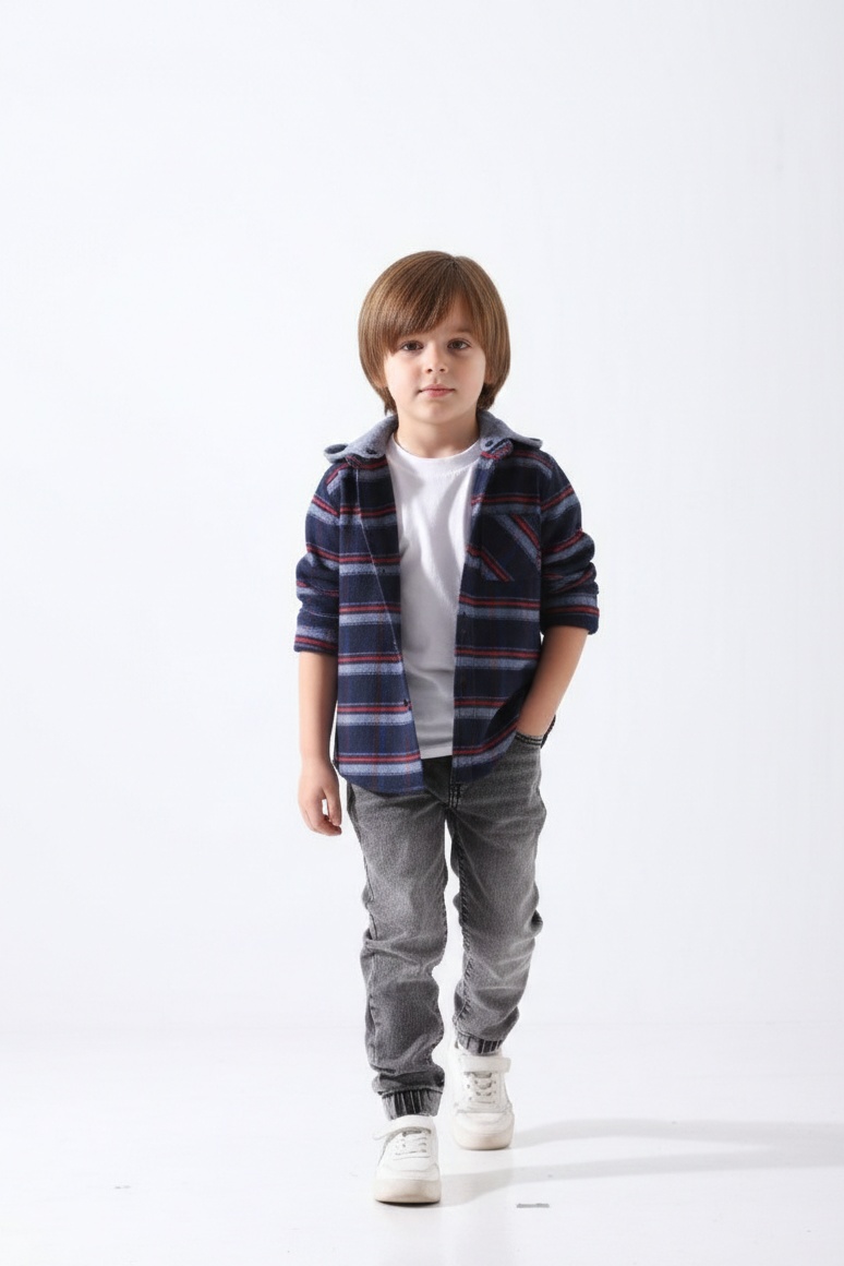 ملابس أطفال خريفية مميزة من براند A&A، تقدم لطفلك إطلالة كاجوال أنيقة مع هذا الجاكيت الفلانيل المخطط. صممنا هذا الجاكيت ليناسب فئة أولادى بيبي من سن سنتين وحتى 6 سنوات تقريبًا، معتميدن على خامة قطنية دافئة وناعمة جدًا على بشرة طفلك.