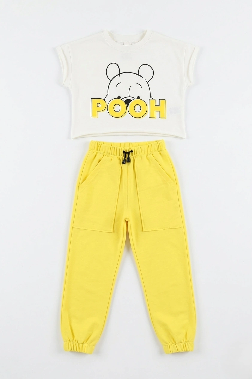 سوت بناتي أصفر وأبيض بو بير – ملابس أطفال صيفيةCrop Top and Joggers Set | سوت بناتي