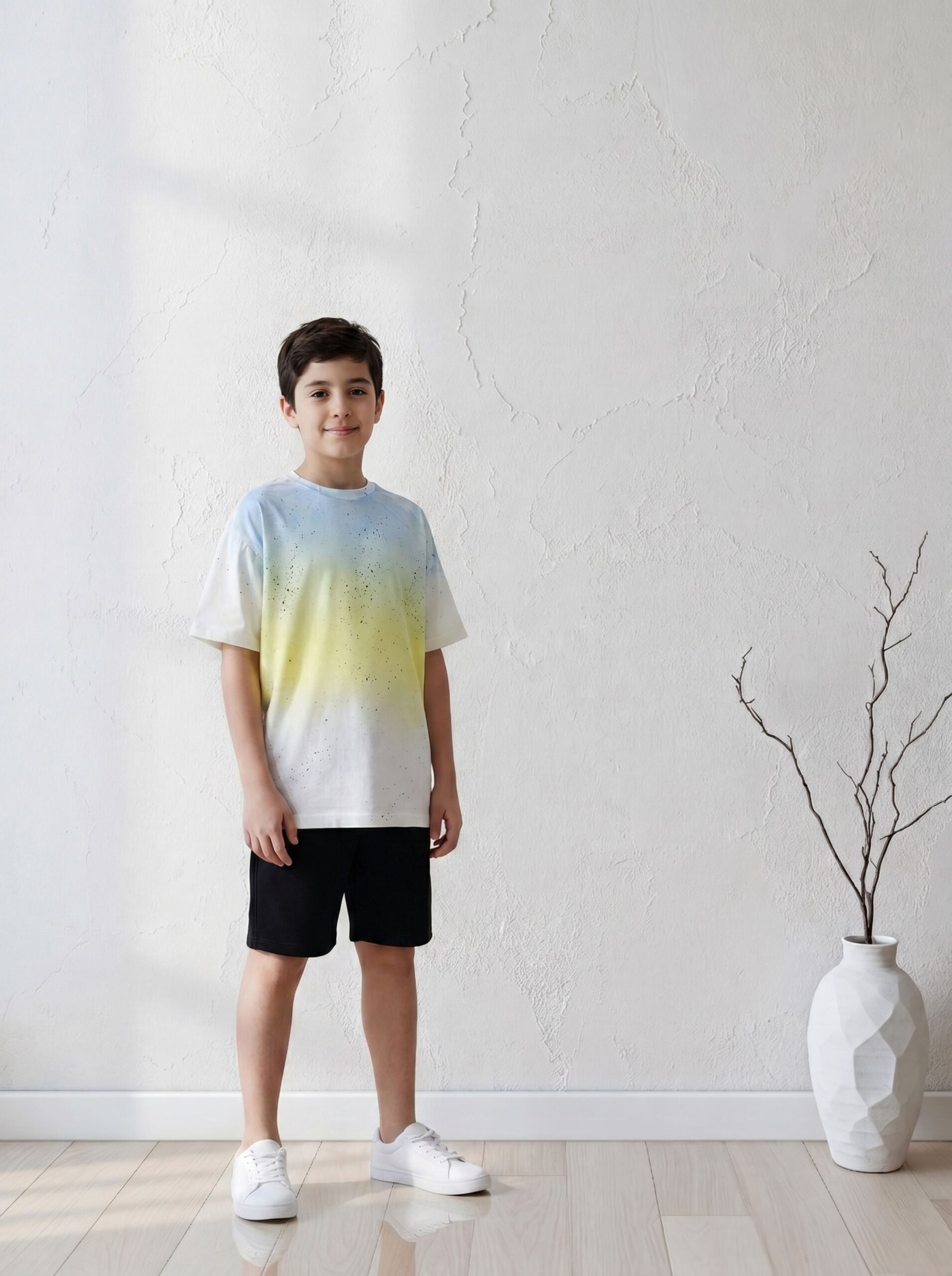 ملابس أطفال صيفية بتصميم ألوان متدرجة المبتكر تقدمها ليكي براند A&A بجودة لا تقارن. التيشيرت مصنوع من قطن نقي ممتاز يمنح طفلك البرودة والراحة اللازمة في أيام الصيف الحارة. القماش معالج ضد الانكماش ليناسب نشاط فئة أولادى كبير اليومي.