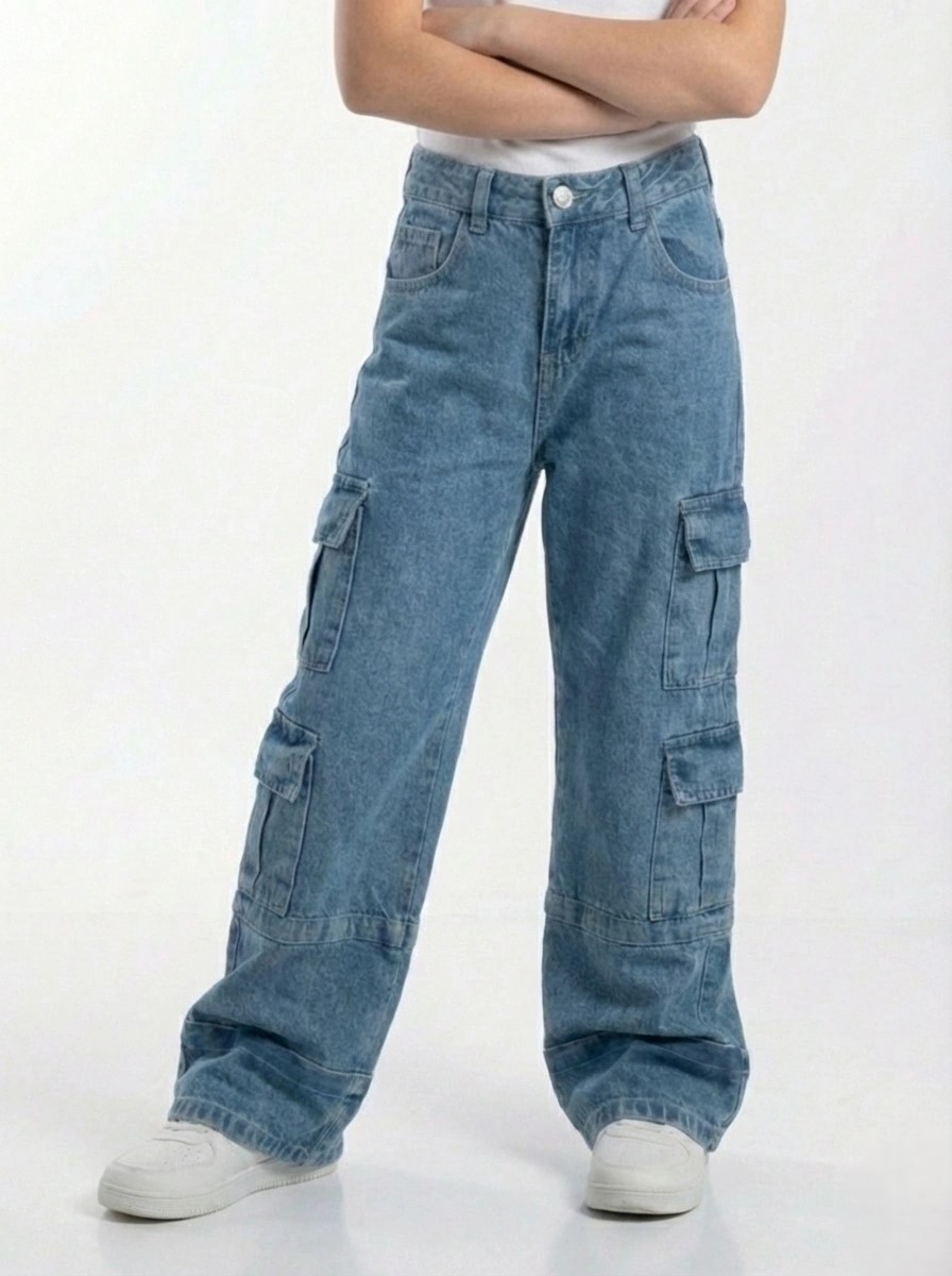 بنطلون جينز كارجو أزرق يونيسكس – ملابس أطفال خروج أنيقةCargo Jeans Unisex | بنطلون جينز