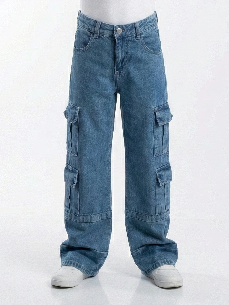 بنطلون جينز كارجو أزرق واسع – ملابس أطفال خروج أنيقةJeans Cargo Unisex | بنطلون جينز