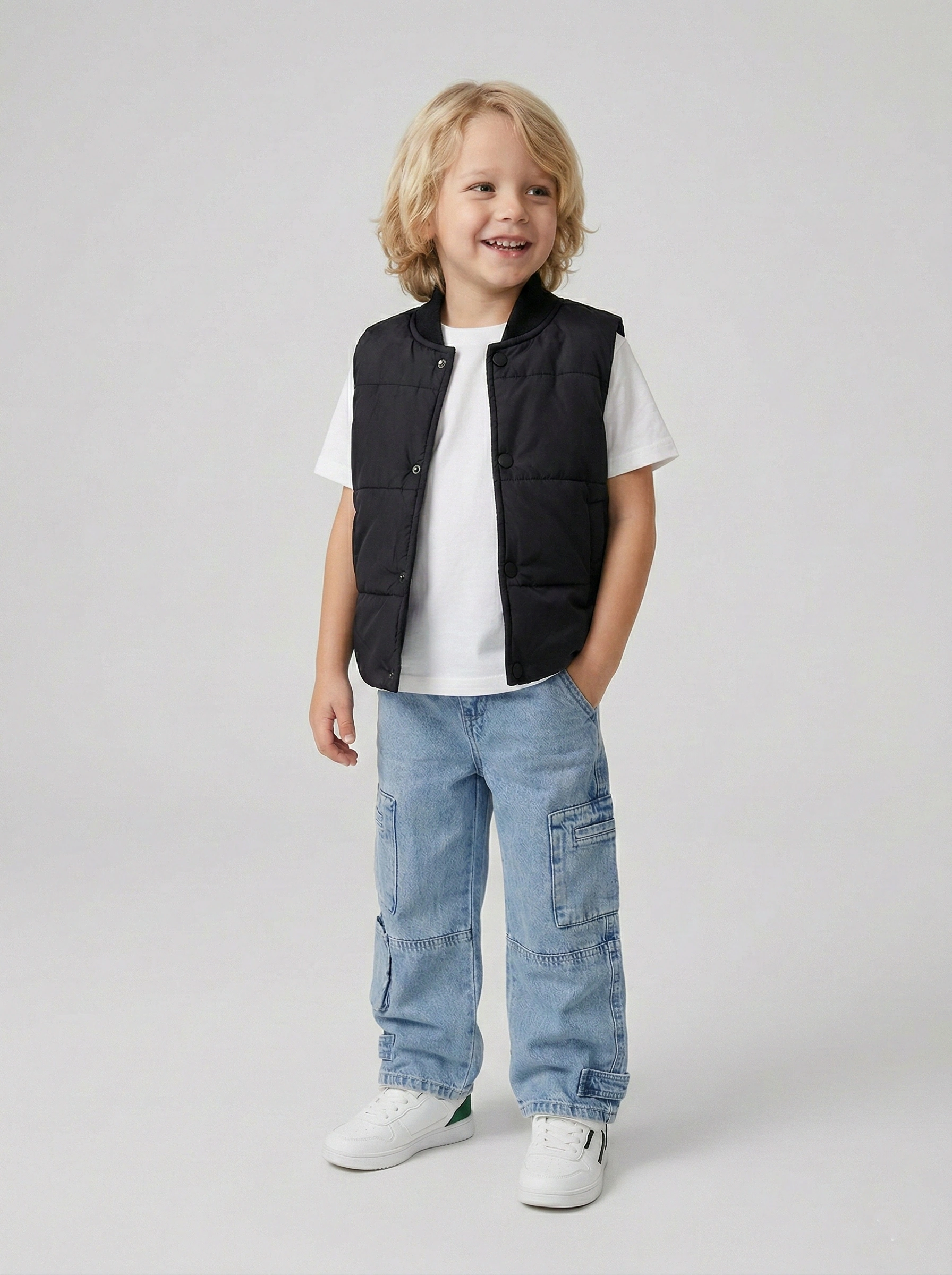 ملابس أطفال من A&A تقدم لكِ فيست أولادي مبطن بتصميم عصري وأنيق جداً. هذه القطعة مثالية لفئة أولادى بيبي من سن سنتين لست سنوات. الفيست يأتي باللون الأسود الملكي الذي يتناسب مع كافة ألوان الملابس الأخرى بسهولة. يتميز بخامة خارجية مقاومة للرياح مع تبطين داخلي يوفر الدفء اللازم لطفلك. التصميم بدون أكمام يمنح طفلك حرية كاملة في الحركة واللعب والنشاط اليومي.