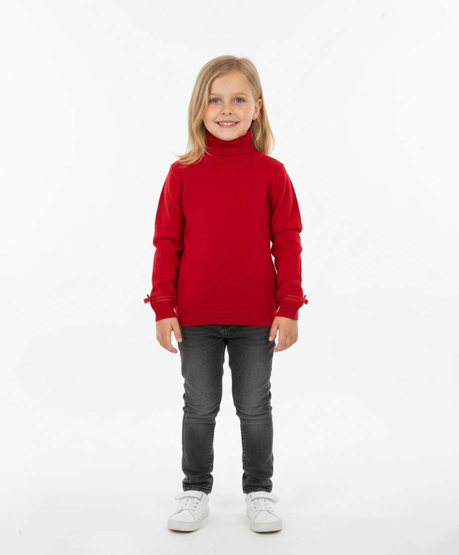 ملابس أطفال شتوية تجمع بين الدفء والأناقة من براند A&A، حيث نقدم لكِ هاف كول بناتي بلون أحمر زاهي يخطف الأنظار. القطعة مصنوعة من خامة تريكو ناعمة جدًا وصديقة لبشرة بناتي بيبي الحساسة لضمان الراحة طوال اليوم. يتميز التصميم بياقة عالية مرنة تحمي طفلتك من برودة الشتاء، مع تفاصيل رقيقة على الأكمام تضيف لمسة من الفخامة.