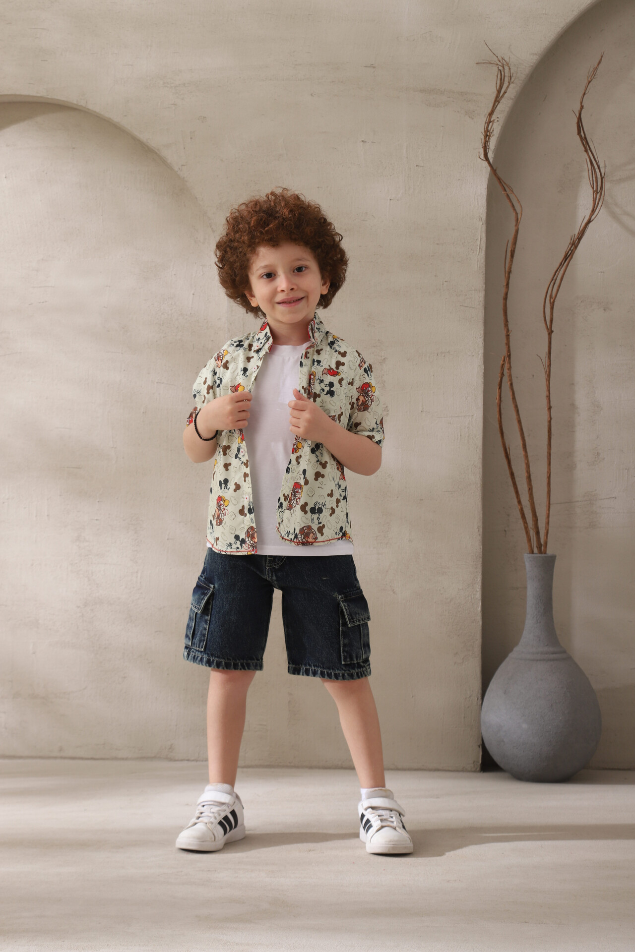 ملابس أطفال صيفية مميزة بلمسة فنية من A&A، نقدم لكِ قميص ميكي ماوس المبهج الذي يعشق الأطفال تفاصيله. القميص مصنوع من قطن ناعم عالي الجودة يسمح بمرور الهواء، مما يجعله مثاليًا للنشاط والحركة في أيام الصيف الحارة دون أي شعور بالضيق. التصميم يجمع بين الأناقة الكاجوال والرسومات المحبوبة، مما يجعله قطعة أساسية في خزانة طفلك للمناسبات اليومية أو الخروجات مع الأصدقاء. القميص مصمم بياقة كلاسيكية وقصة مريحة تضمن لطفلك حرية الحركة الكاملة بأسلوب عصري وأنيق.
