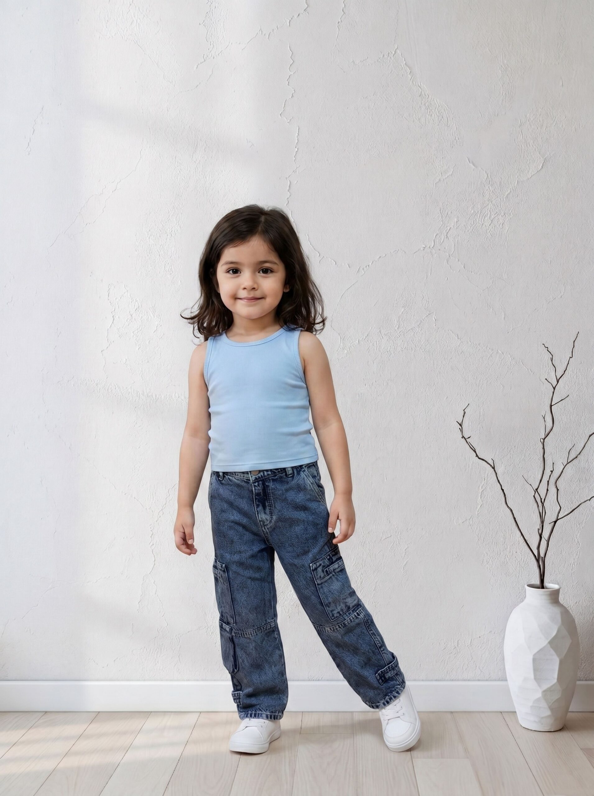 ملابس أطفال صيفية لا غنى عنها في خزانة طفلتك من براند A&A الفاخر. يتميز هذا التوب البناتي بخامة ريب قطنية ناعمة جداً على بشرة بنات سن سنتين لحد ست سنوات. التصميم الكاجوال بدون أكمام يوفر حرية حركة كاملة لطفلتك أثناء اللعب والنشاط اليومي. يأتي التوب بلون لبني سماوي رقيق يتناسب بسهولة مع الجينز أو الشورتات الصيفية.