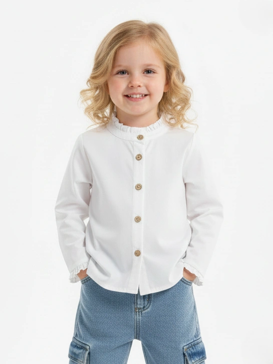 White Ruffle Collar Shirt for Girls | شميز بناتي